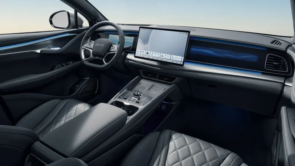 Tüm modeller, Comfort modelindeki 19 inç jantlar ve çift motorlu modellerdeki 20 inç üniteler hariç, dışarıdan büyük ölçüde aynı görünüyor. İçeride, BYD’nin tanıdık dönen dokunmatik ekranı standart olarak takılmış ve artık 15,4 inç ölçülerinde. Ayrıca ikinci bir 10,25 inç sürücü ekranı var ve her sürümde elektrikle ayarlanabilir, ısıtmalı ve havalandırmalı ön koltuklar bulunuyor. Excellence modelleri de suni deri iç mekanı tamamen Nappa deri kaplamayla değiştiriyor.